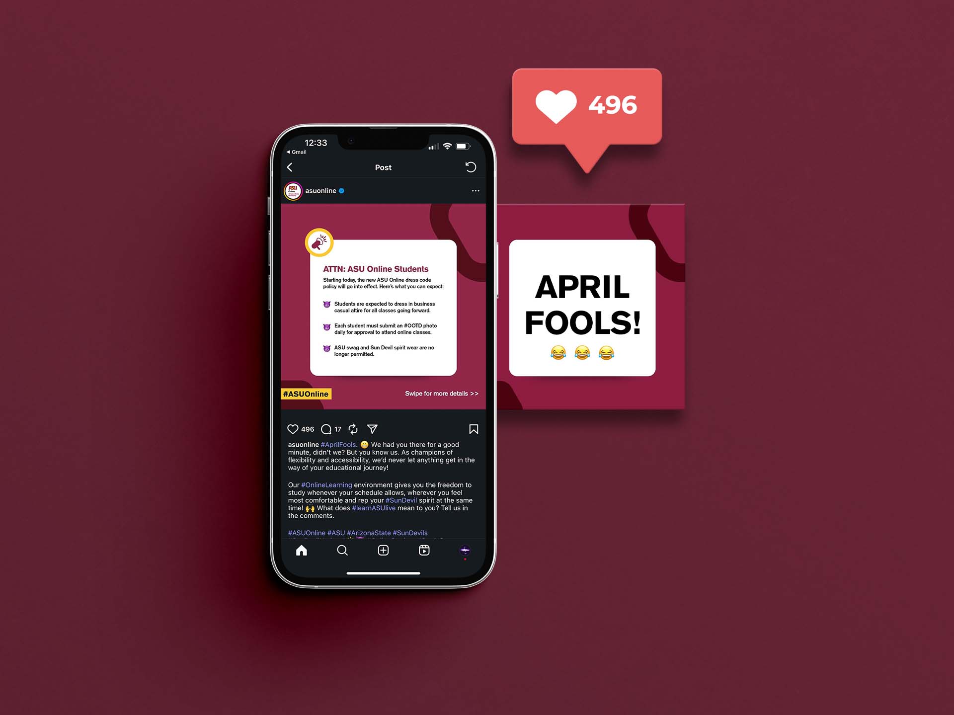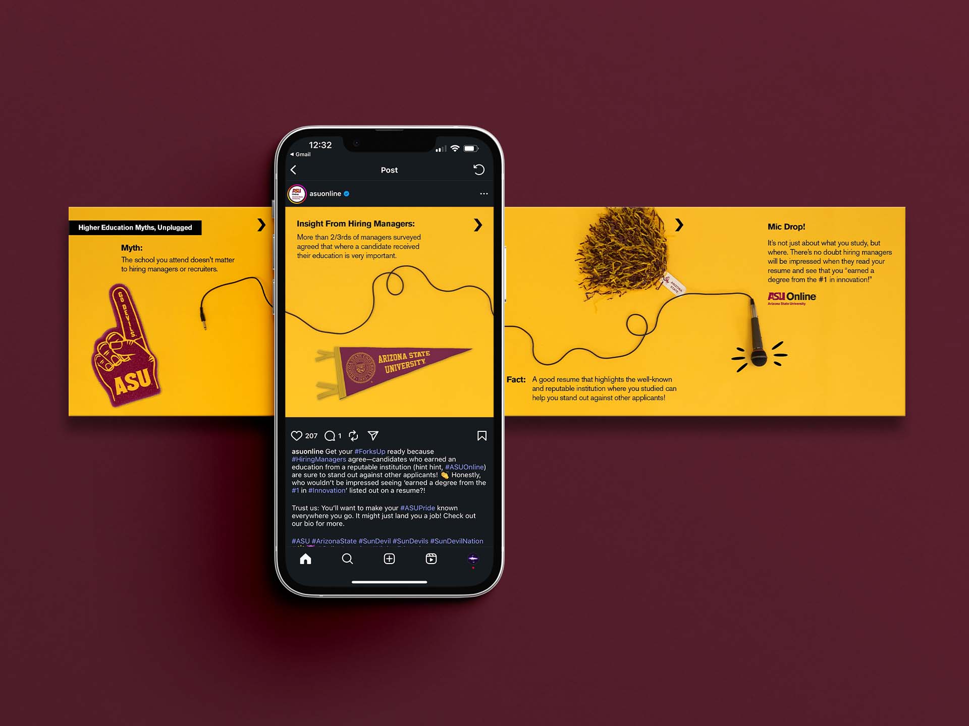 By honing tone of voice and brand messaging, I strategized quarterly campaign content to bolster the success of larger activations like Commencement, crafted on-trend social media content to inspire learners, heightened the reach of university's #learnASUlive Brand Ambassador program by creating thought-leadership-driven prompts, and upheld university lead generation goals through the creation of conversion-rooted paid advertising.