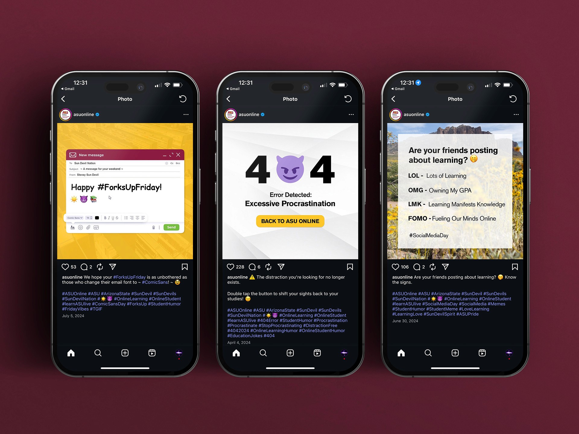 Aside from the hefty impacts made via our social media strategy implementation, the introduction of our #learnASUlive Brand Ambassador program built student confidence, helping them tell unique stories aimed at inspiring prospective life-long learners.