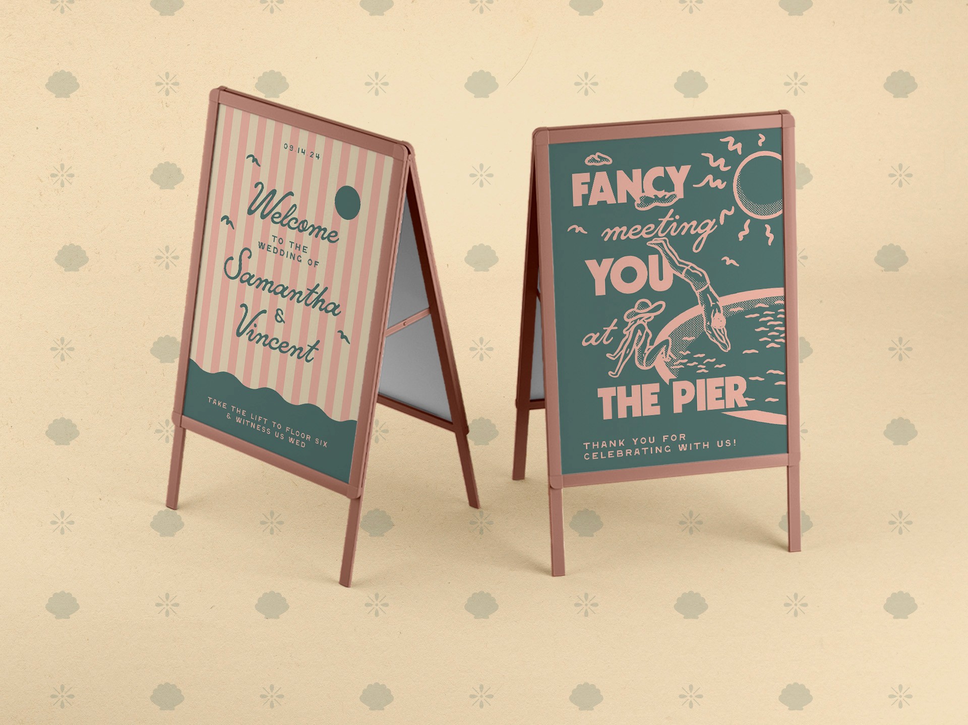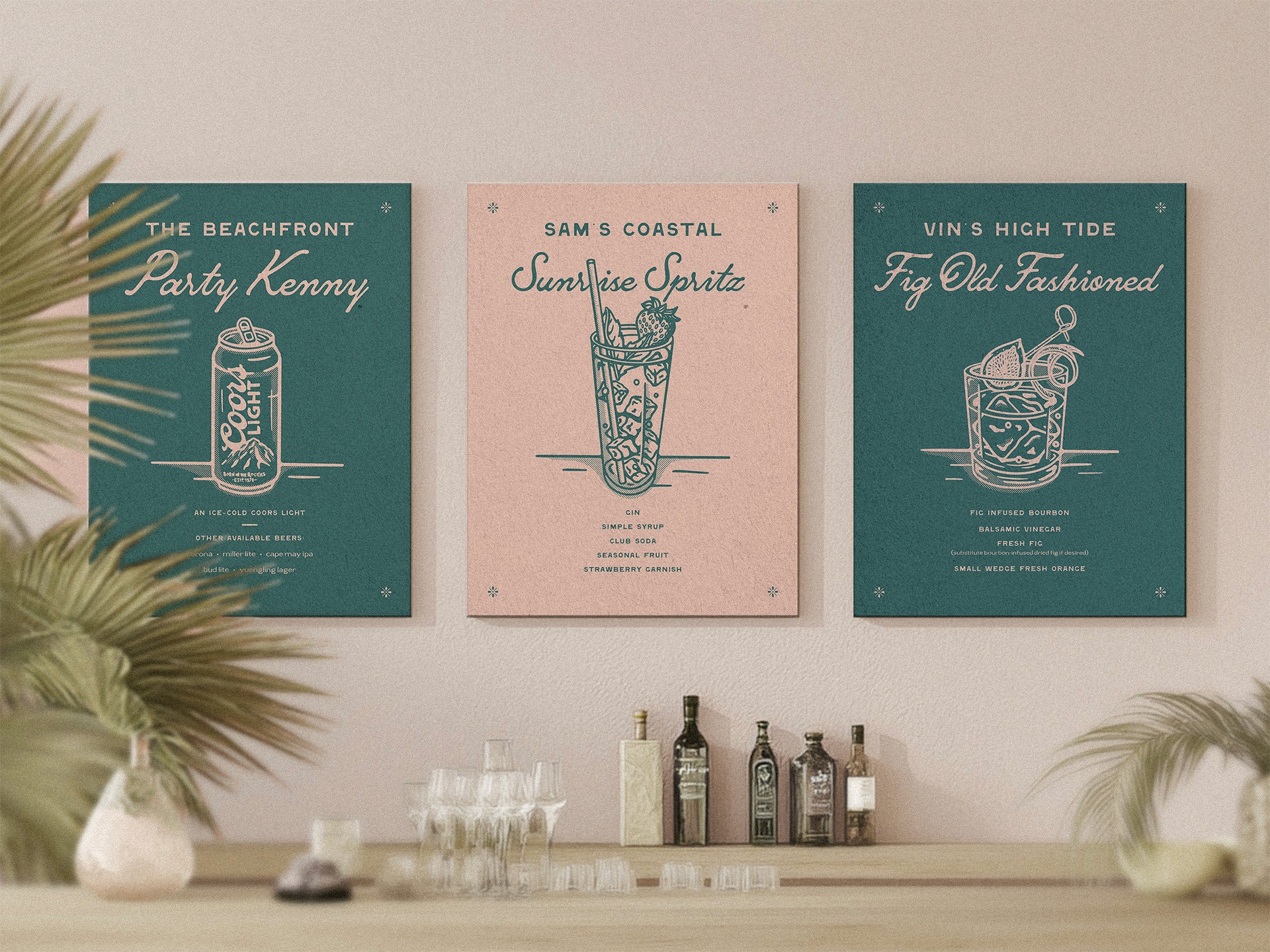When a designer and copywriter meet at the alter, they create what's been deemed 'the best wedding, ever.' Together, we used our creativity and marketing expertise to build a custom wedding website, engineer professional-grade invitations, manifest some tear-jerking vows, and perfect every aspect of the day—from embossed cocktail napkins and hotel keychain escort cards to vintage-inspired event posters and specialty drink signage.